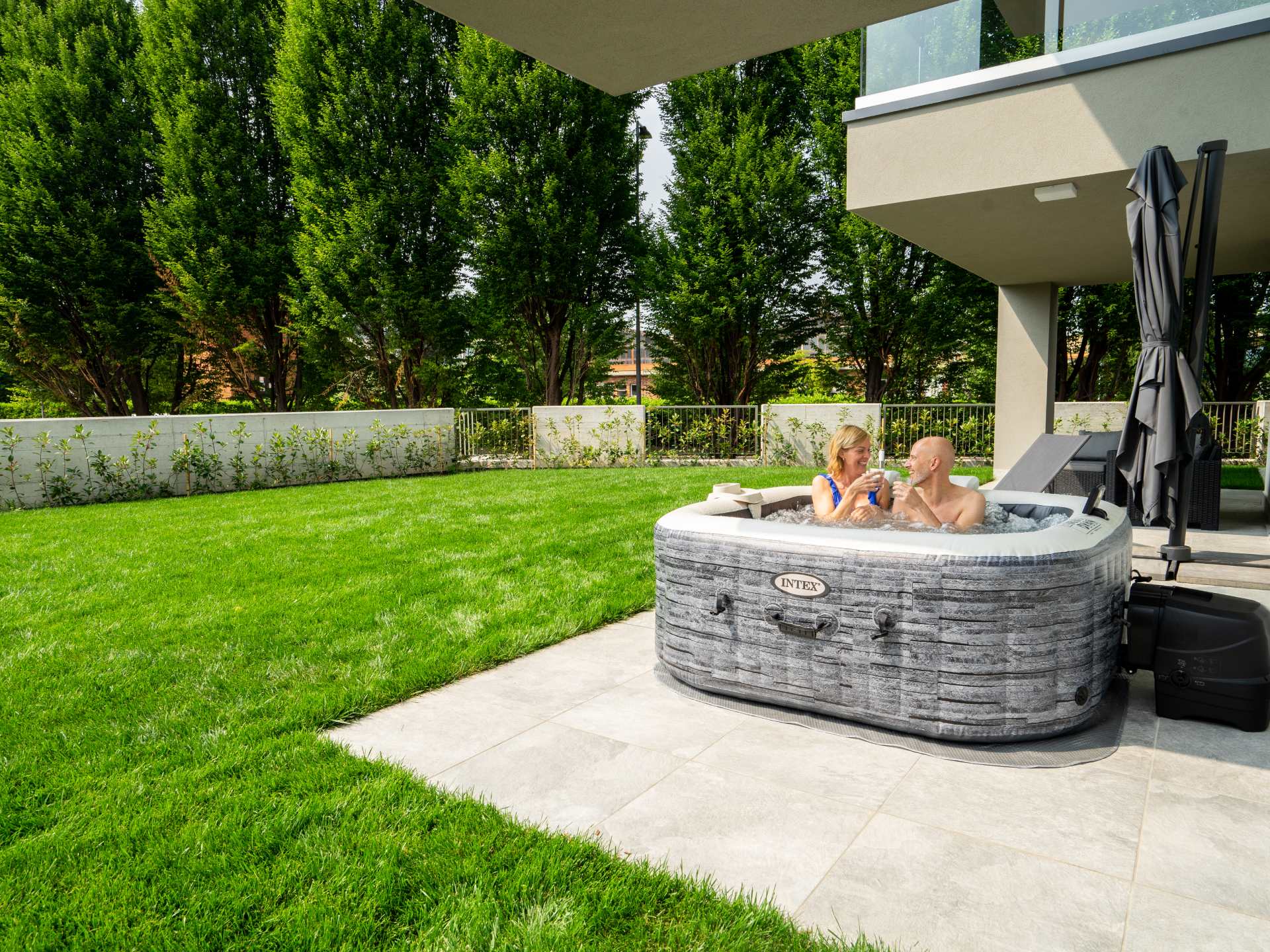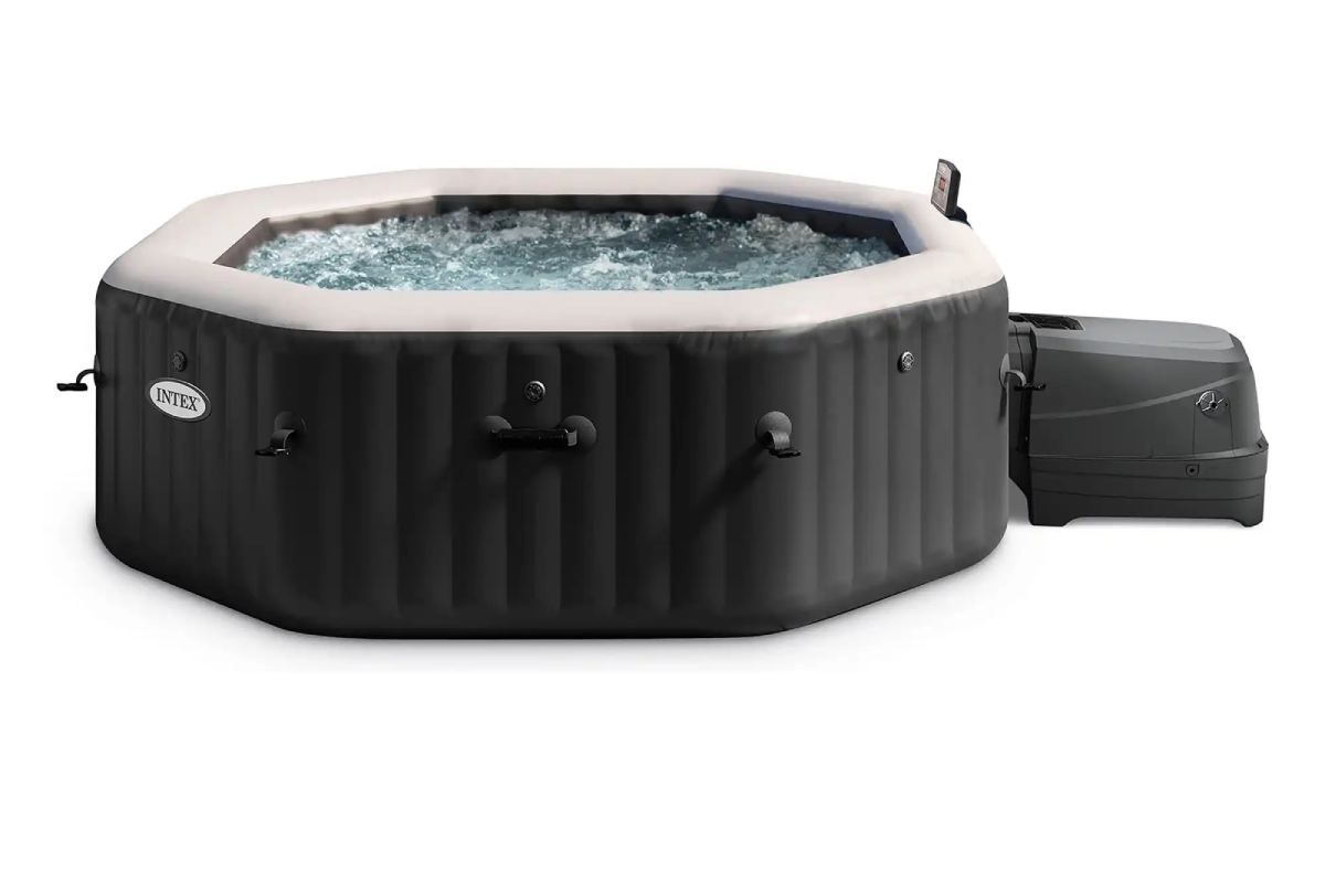 INTEX Jet & Bubble Deluxe™ SPA, dizajniran u osmougaonom obliku i elegantnoj crnoj boji, transformiše vaš spoljašnji prostor u ekskluzivnu zonu za opuštanje. Uživajte u umirujućim masažama zahvaljujući visokoperformantnim masažnim i vazdušnim mlaznicama. Ovaj model je namenjen za 6 osoba sa svim vrhunskim karakteristikama koje možete naći u INTEX SPA proizvodima—kao što su dva integrisana sistema za tretman vode i Fiber-Tech™ tehnologija koja osigurava snagu i stabilnost. Bežični kontrolni panel kojim se može upravljati putem aplikacije i udobni nasloni za glavu na naduvavanje čine vaše opuštanje u SPA još prijatnijim.